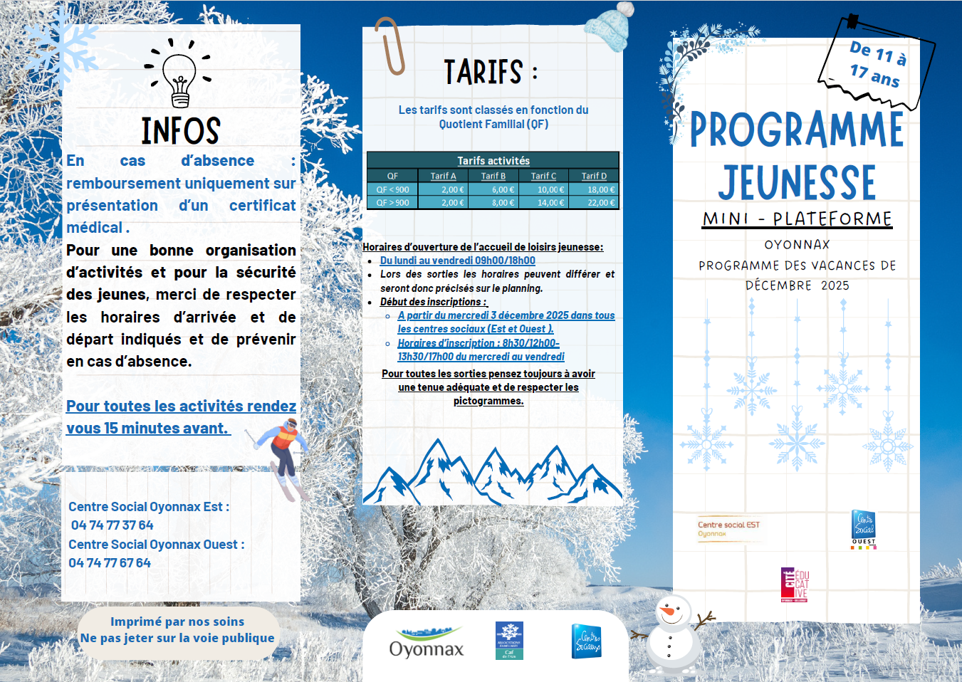 Programme des animations prévues sur le secteur jeunesse (11-17 ans) les 22-23 et 24 décembre.